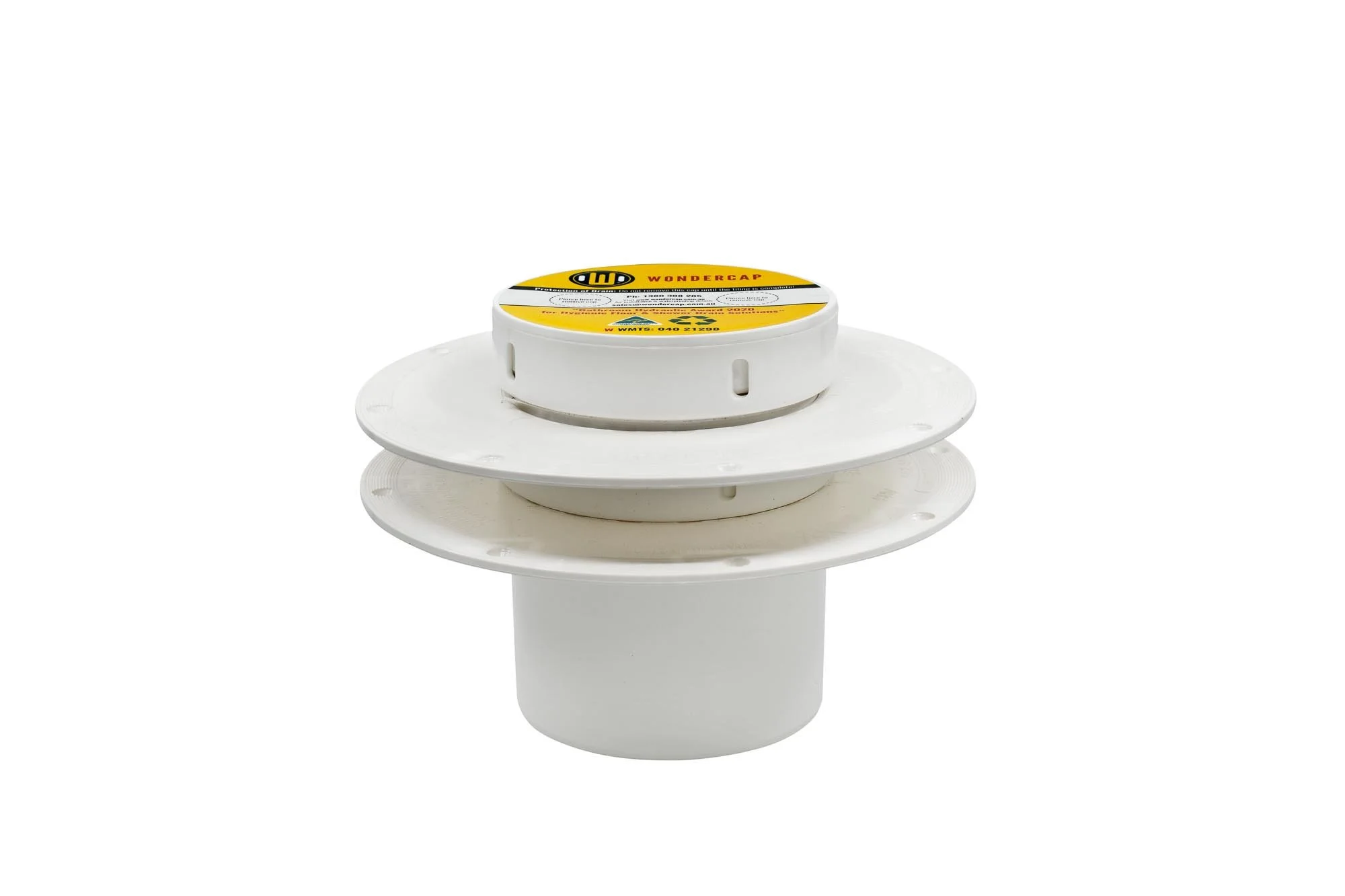 The flange is also available with a lightweight push-in test plug, which prevents construction debris from entering the open drain.