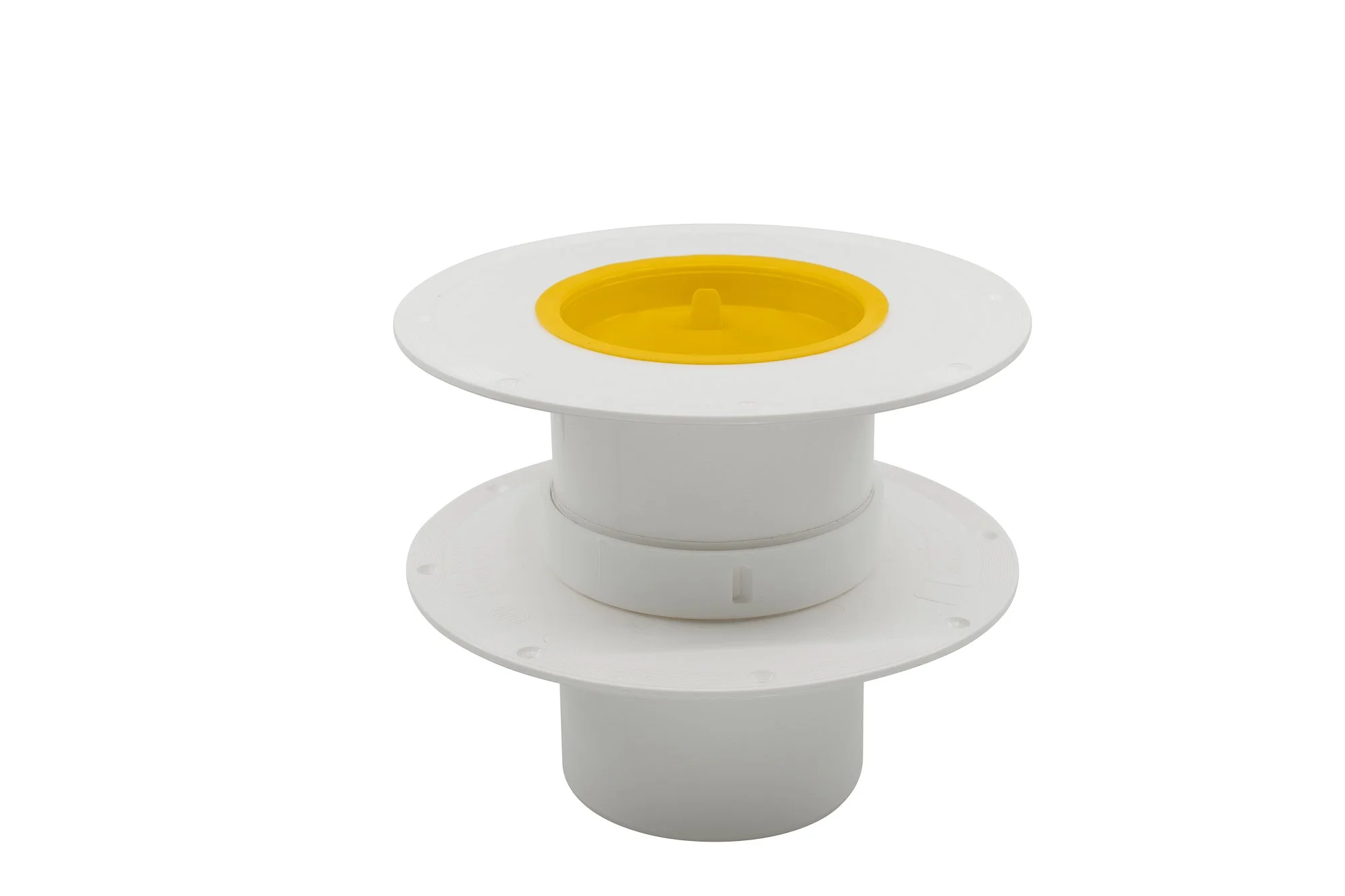 The flange is also available with a lightweight push-in test plug, which prevents construction debris from entering the open drain.